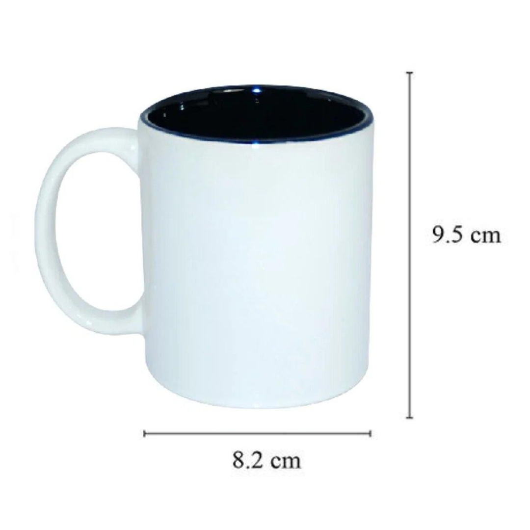 La taza blanca de cerámica con capacidad de 11 oz con interior de color negro está diseñada para sublimación por transferencia. Decórala con tu diseño preferido.